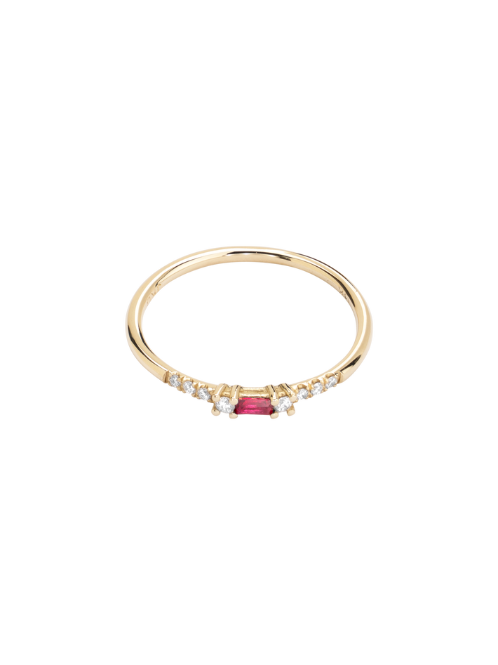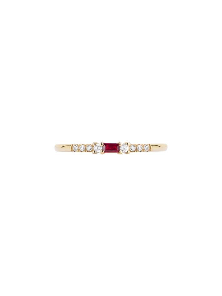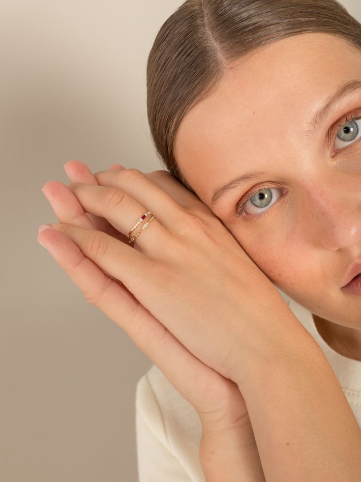A classic band with a pop of ruby colour, this piece looks great when stacked with other bands in the collection.