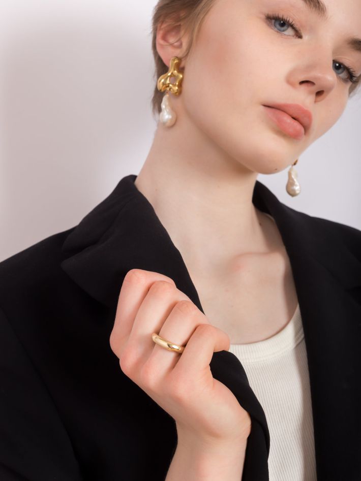 "AGMES make cool, sculptural jewellery with responsible practices. Their hoops and stacking rings look best when worn doubled up, and you should mix your metals too. This jewellery will become a staple."