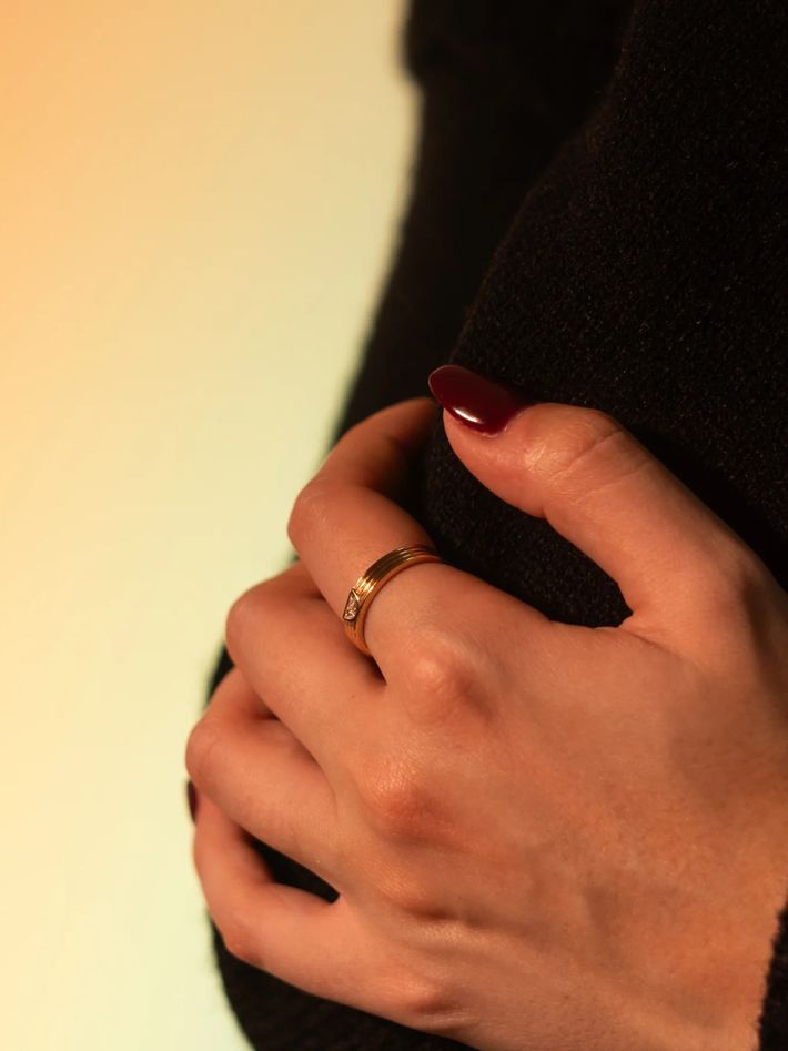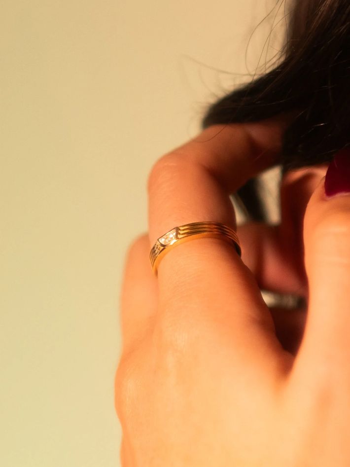 Made of a single, solid precious metal or metal alloy. Highly durable, can always be re-polished to regain its shine after wear.
