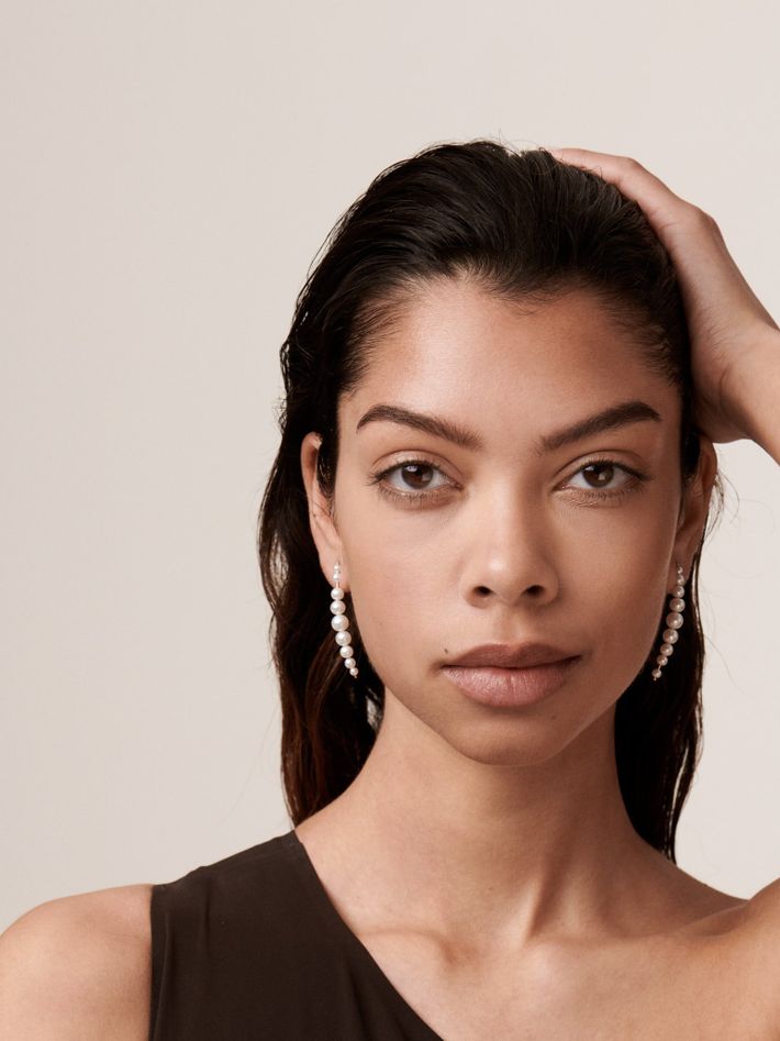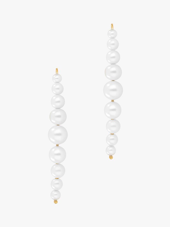 The ultimate earrings for anyone who is a fan of pearls. The graduating pearls and slightly curved drop style gracefully frames the face.