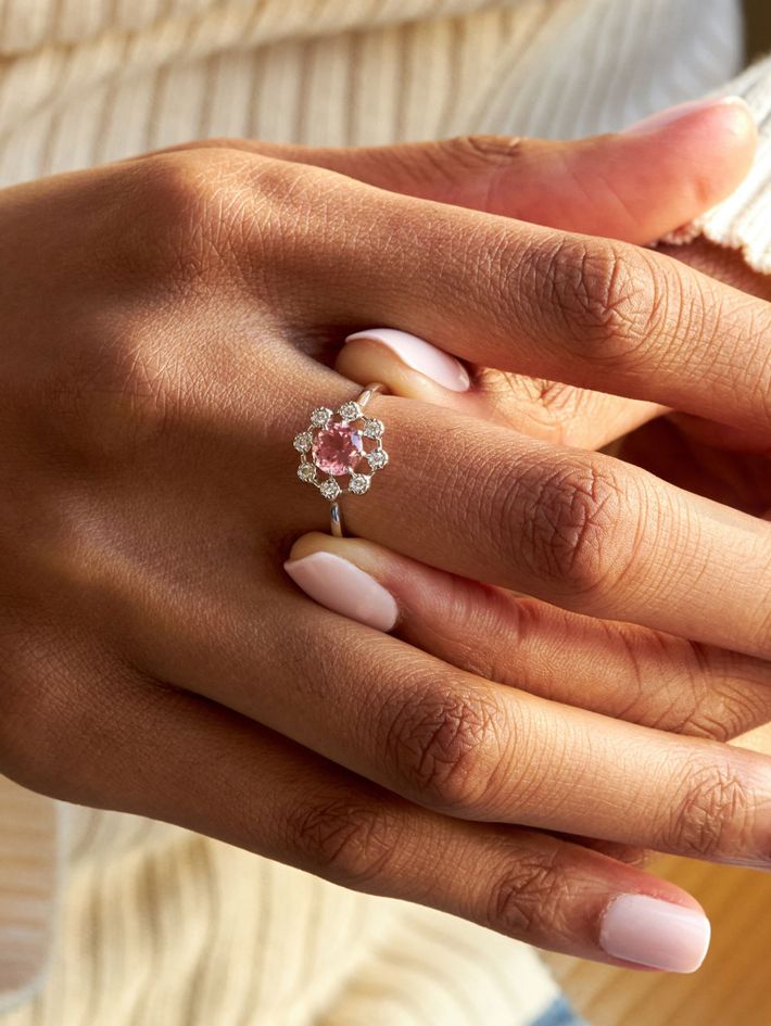 Celandine 14k pink tourmaline & created diamond ring