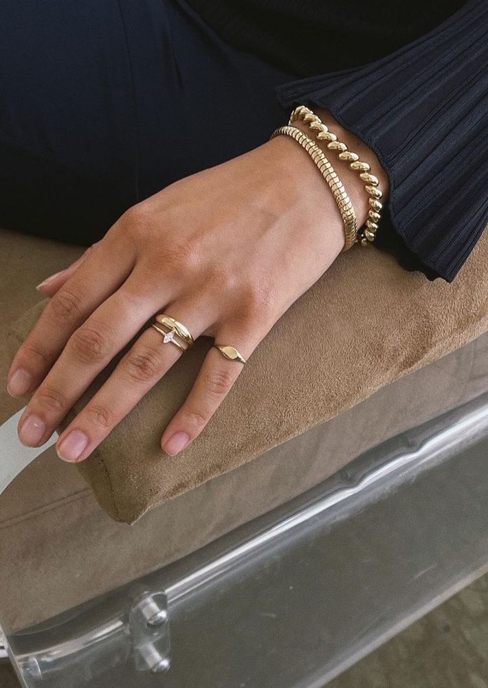 Made of a single, solid precious metal or metal alloy. Highly durable, can always be re-polished to regain its shine after wear.