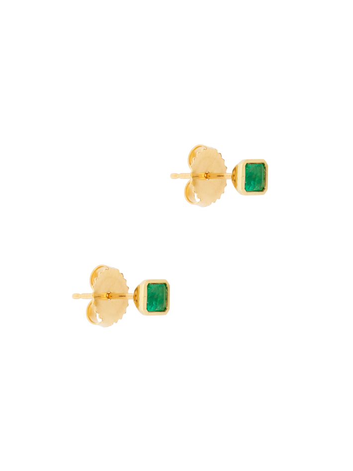 The clean form of these earrings showcases the beauty of the gold and rich emeralds.