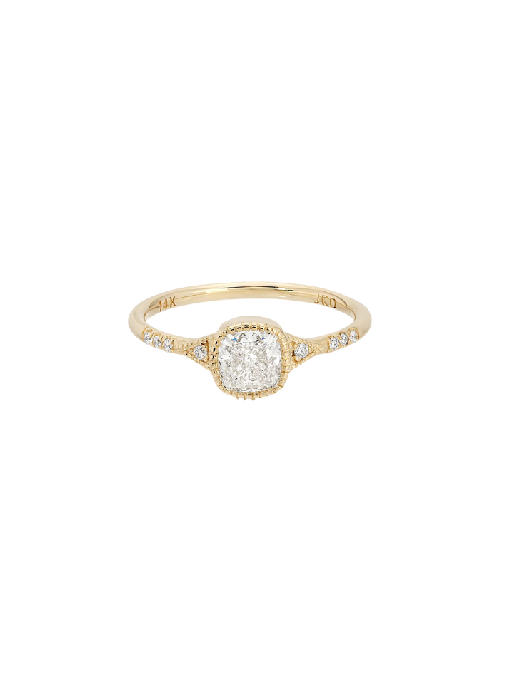- 5 mm cushion cut diamond - two 1.5 mm diamonds - six 1 mm diamonds