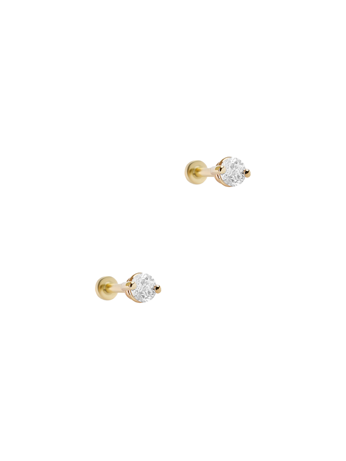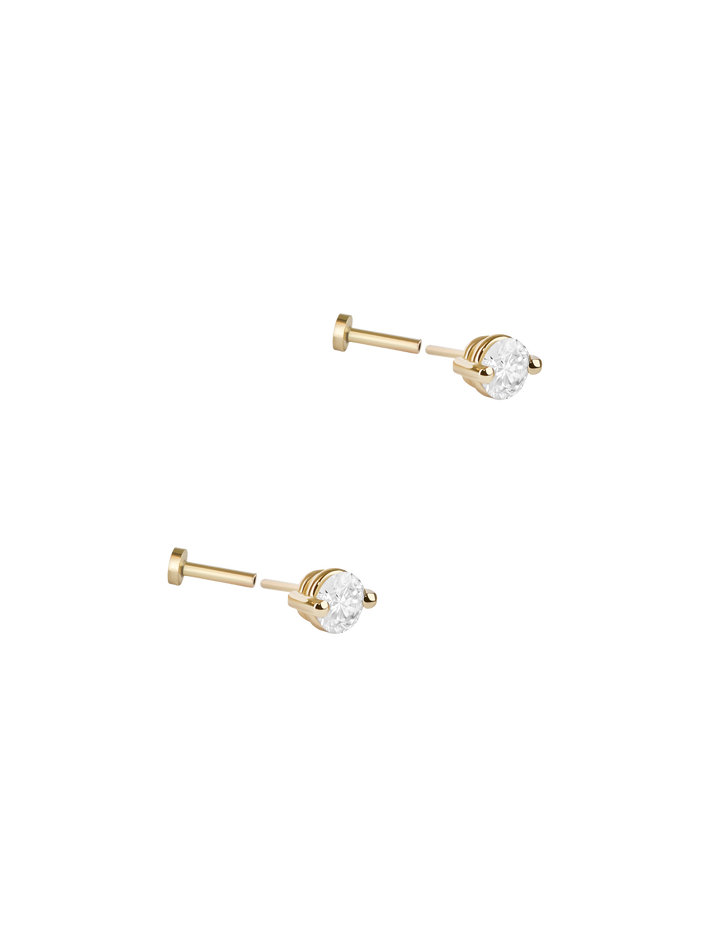 Diamond pinch flat back stud earring, 3mm