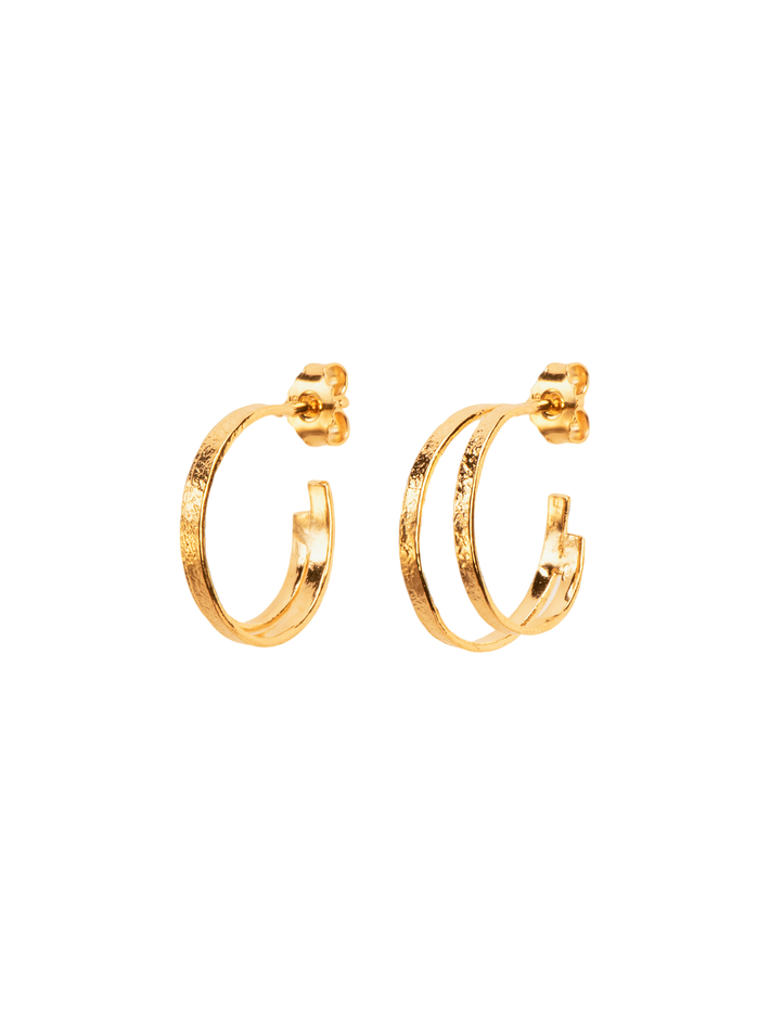 Made of plated 18 karat yellow gold, a thin layer of precious metal layered on the surface of a precious base metal. We recommend using our replating service every 3 or 4 years.