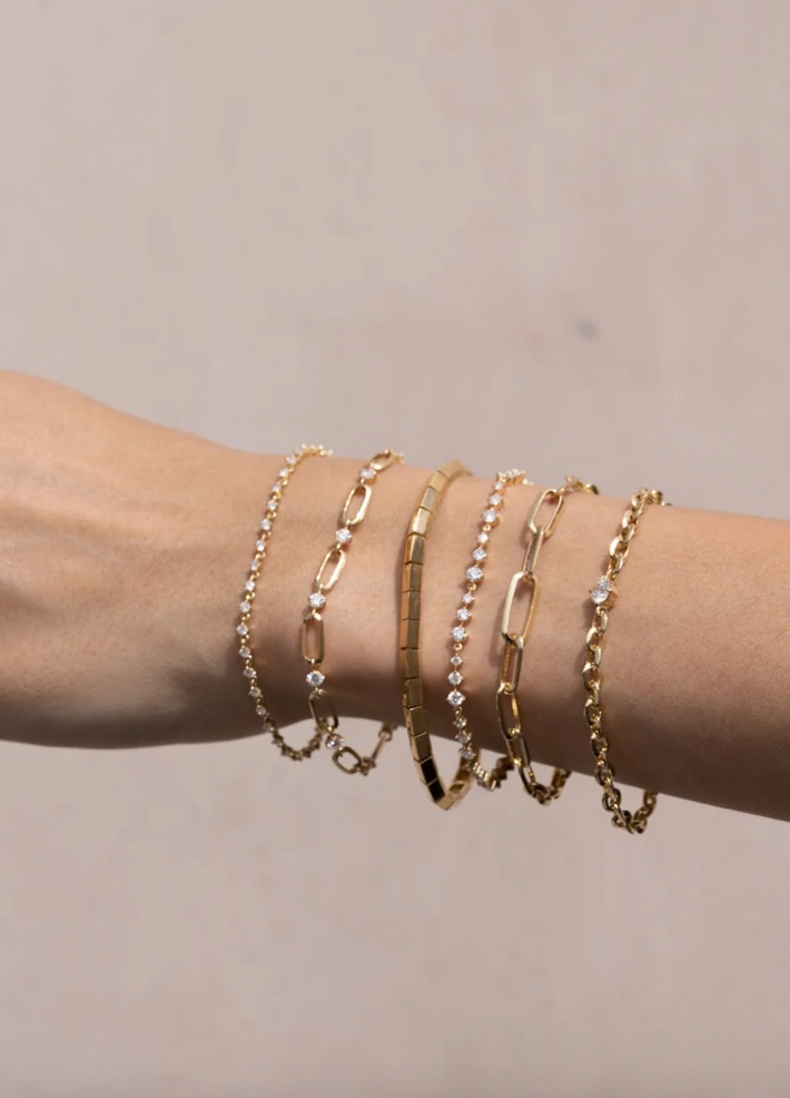 Lizzie’s minimal jewellery has a strong impact. Choose from fine chains with floating gemstones or something a little more bold. Her pieces are designed to be layered and can also be personalised.