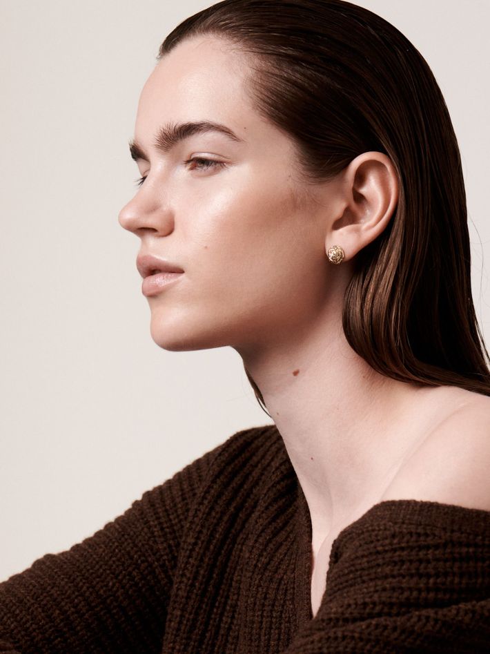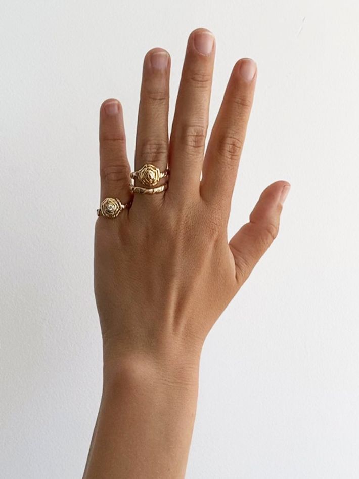 The gold folds and layers to resemble a rose. A handwrought beauty to embellish your earlobes for a sophisticated look.