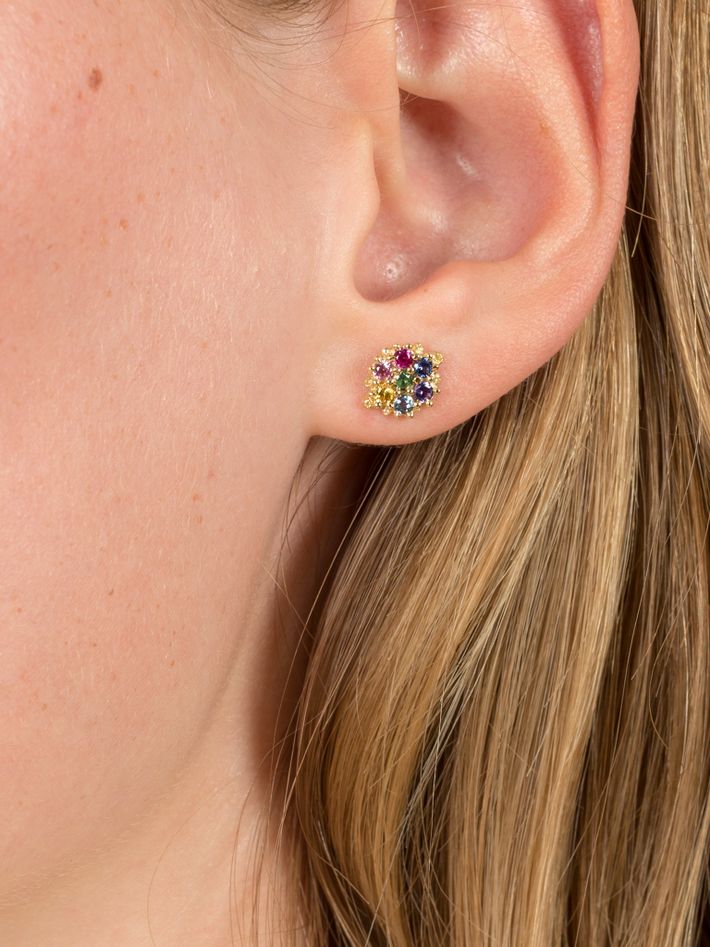 14 kt solid yellow gold0.65 ct in 14 sapphiresPair of earrings