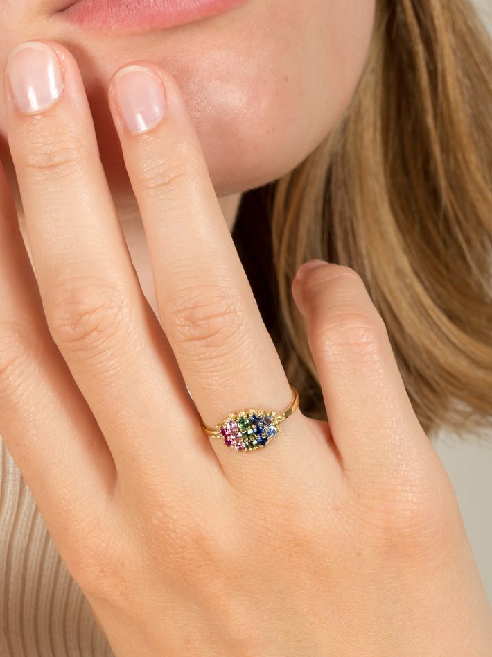 Round multicoloured sapphires - pink, pale pink, green, blue and pale blue.