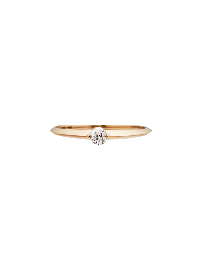 3.3 x 3.3mm (approx 0.16ct) *Each old mine-cut diamond was cut by hand, is unique in nature, and will vary from the stone pictured. Please allow a size and shape variance of about .5mm Old mine cut diamonds were popular in the 18th and 19th centuries. They have a softer and more squarish shape than the typical brilliant-cut diamonds of today. The diamond set in the Floe Old Miner Ring is antique and post-consumer recycled—which means it’s been repurposed from old jewelry to be used in new designs.