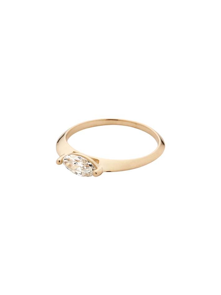 Vintage diamond: H VS2-SI1 / 7.4mm x 3.6mm / 0.38ct The diamond set in the Florence ring is vintage and post-consumer recycled—which means it’s been repurposed from old jewelry to be used in new designs. This Marquise is from a 1950s platinum brooch comprised of baguettes, marquise, and a few round diamonds. A truly one-of-a-kind stone! Our recycled diamonds are post-consumer recycled—which means they’ve been repurposed from old jewelry to be used in new designs.
