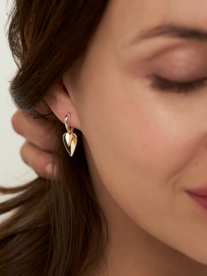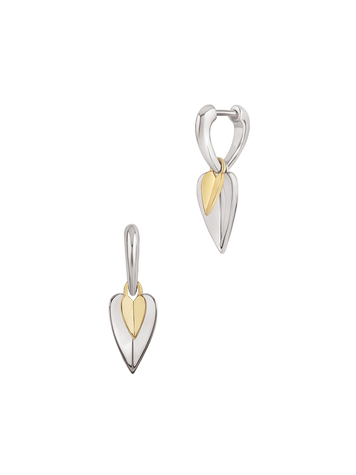 Folded heart duo drop hoops