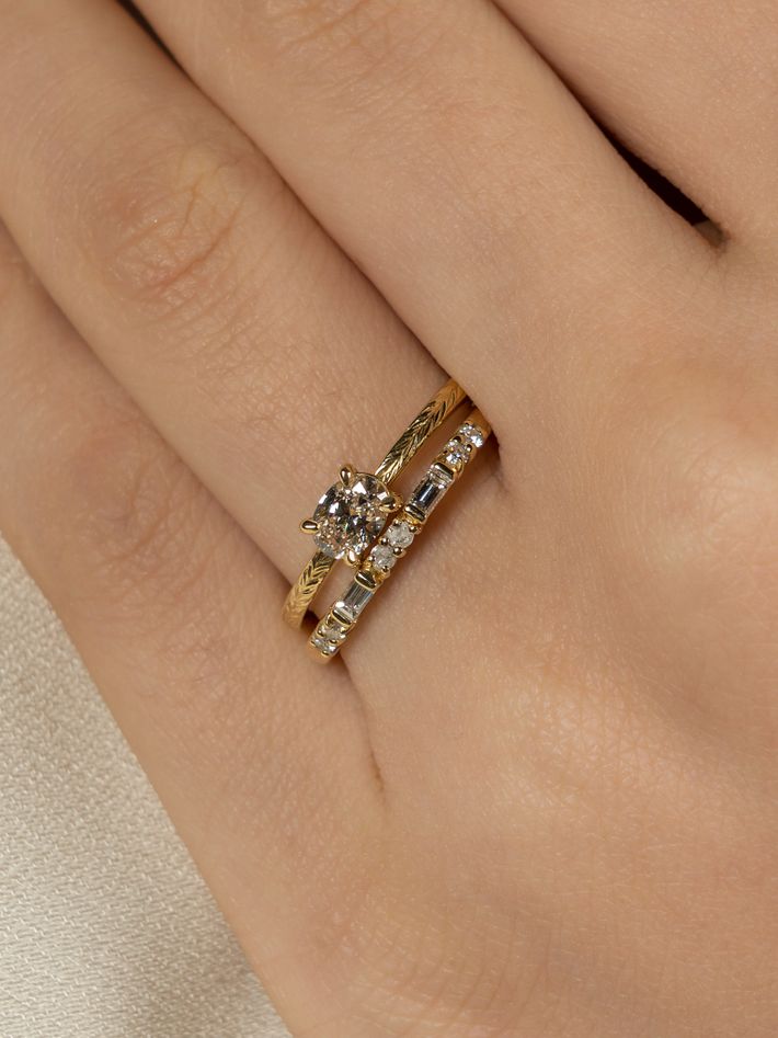 Made of a single, solid precious metal or metal alloy. Highly durable, can always be re-polished to regain its shine after wear.