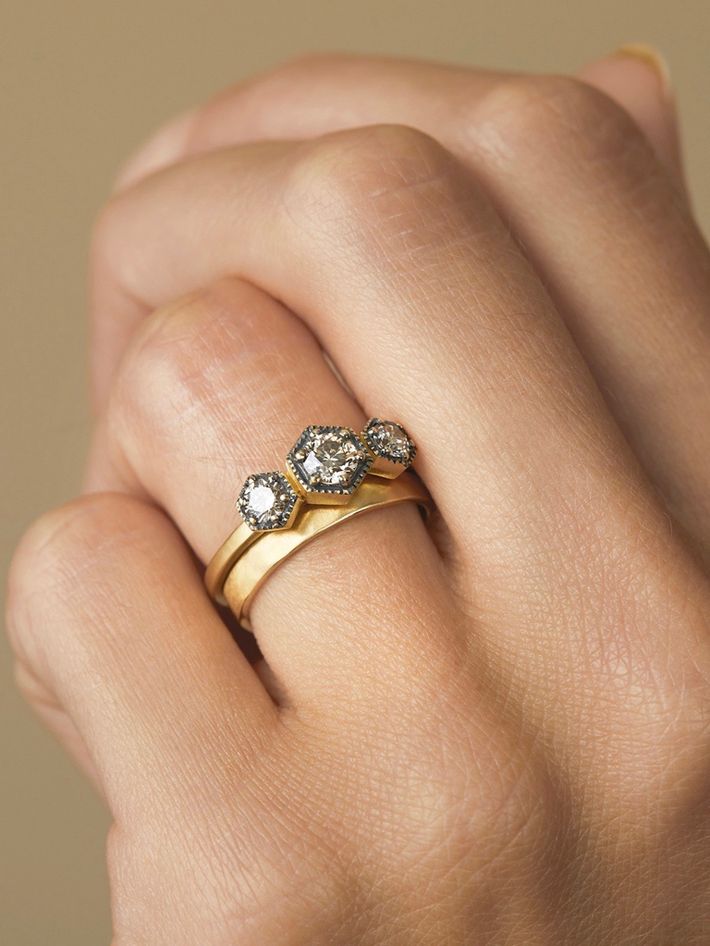 Grand brown diamond triple hexagon ring