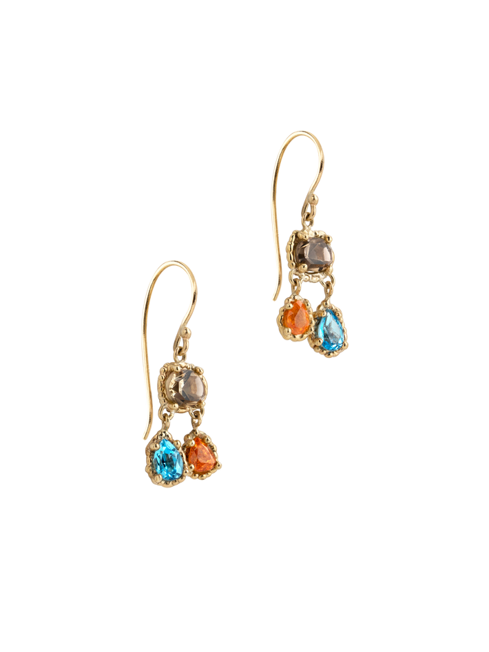 Grey, blue & orange trio earrings