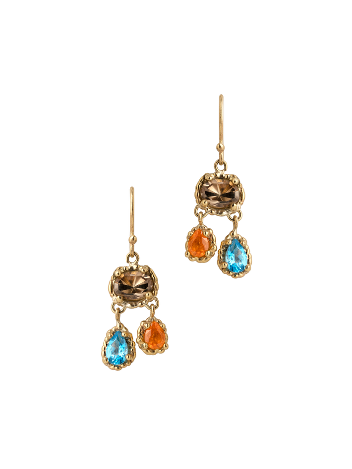 9 kt solid yellow gold2 quartzs, 2 garnets & 2 topazsPair of earrings