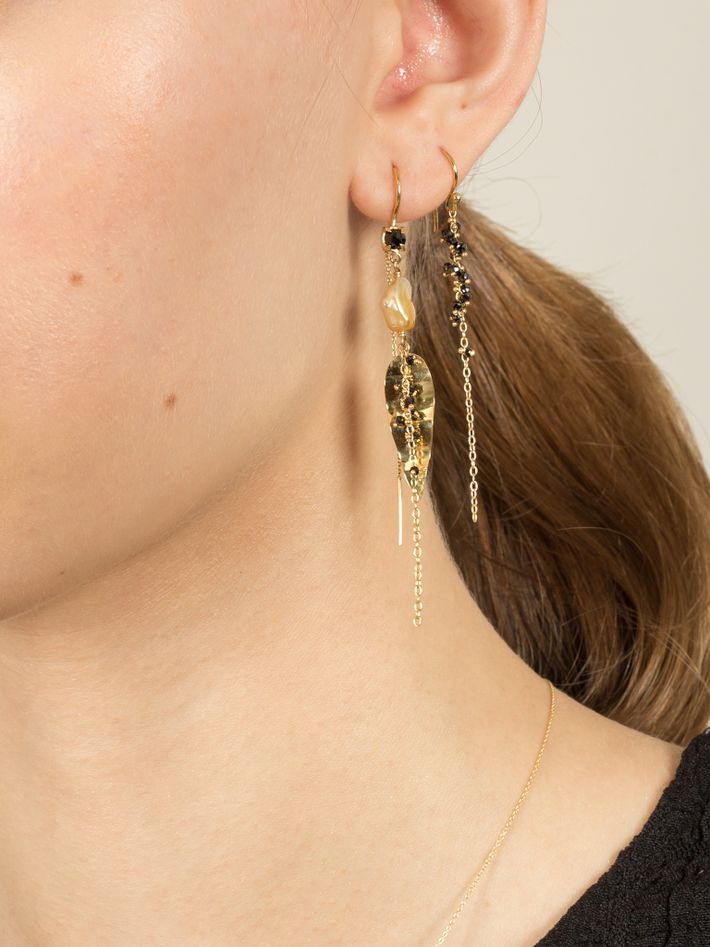 Ilya golden pearl and black diamond earrings