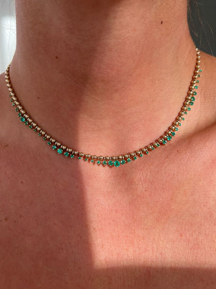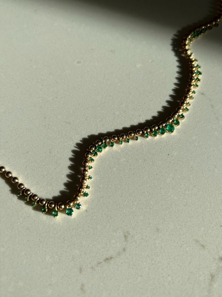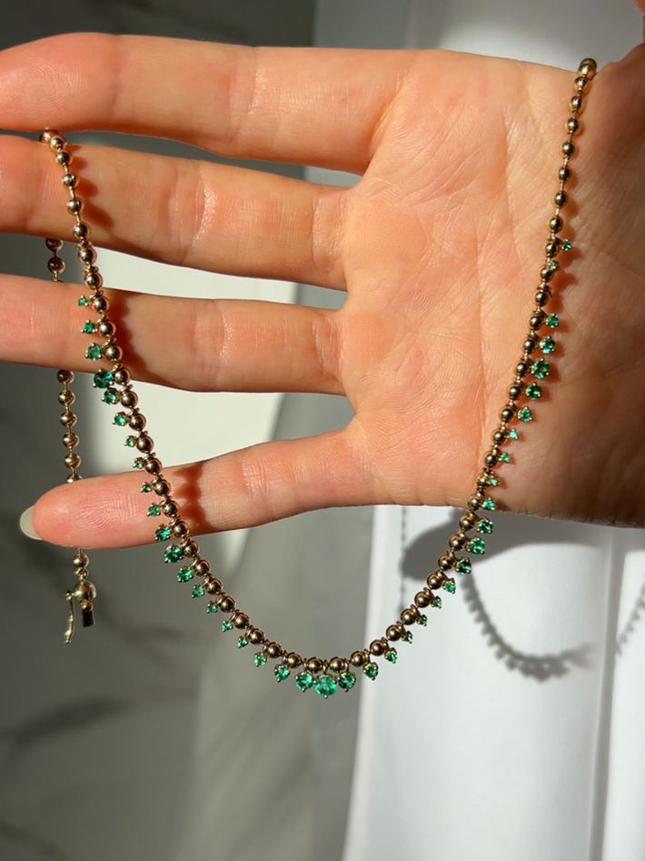14 kt solid yellow gold2.1 ct in 45 emeralds