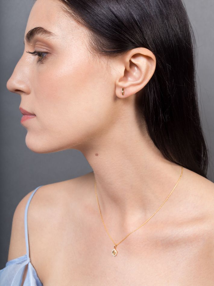 Lizzie’s minimal jewellery has a strong impact. Choose from fine chains with floating gemstones or something a little more bold. Her pieces are designed to be layered and can also be personalised.
