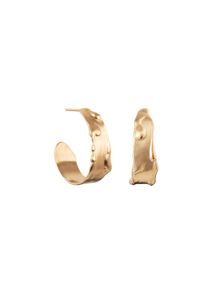 These hoops capture the organic textures of molten gold, this is the larger pair if you are looking for a bolder way to wear the design.
