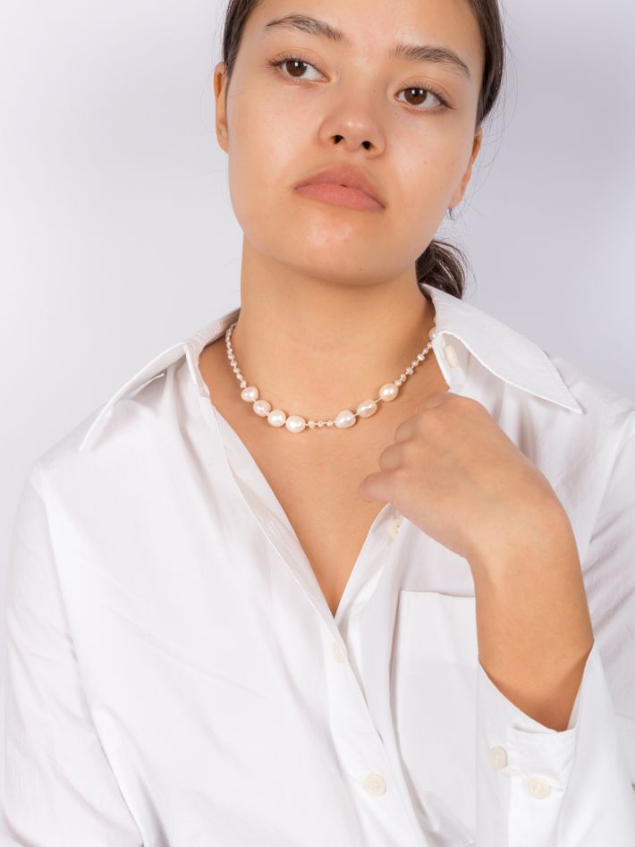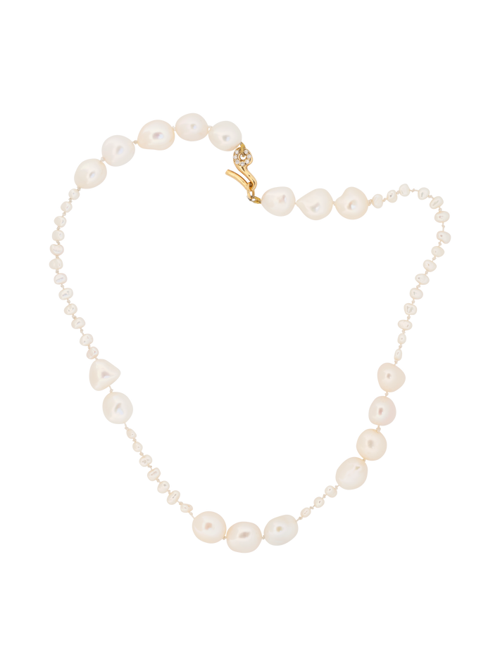 Pearls of varying shapes and sizes make this necklace a little extraordinary.