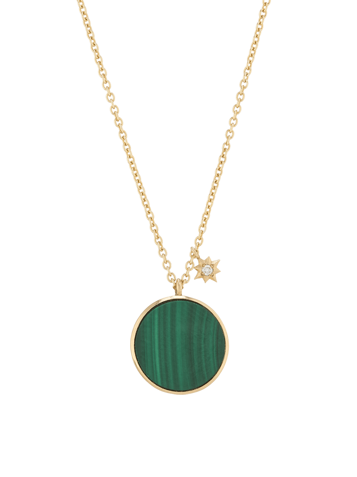 9 kt solid yellow gold0.02 ct in 1 diamond & 1 malachite