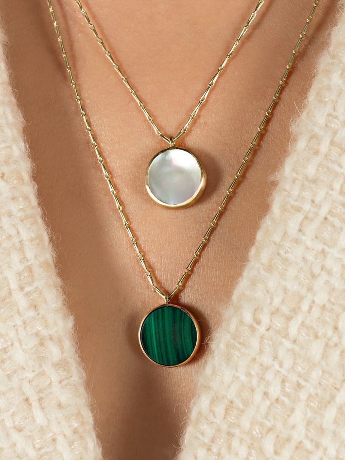 Malachite disc pendant chain necklace