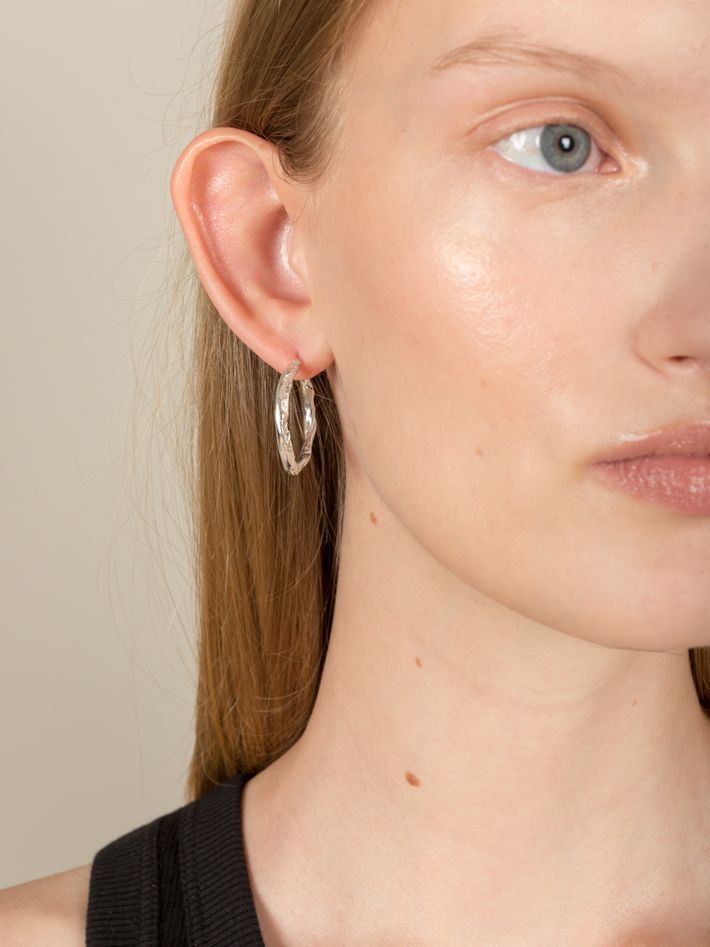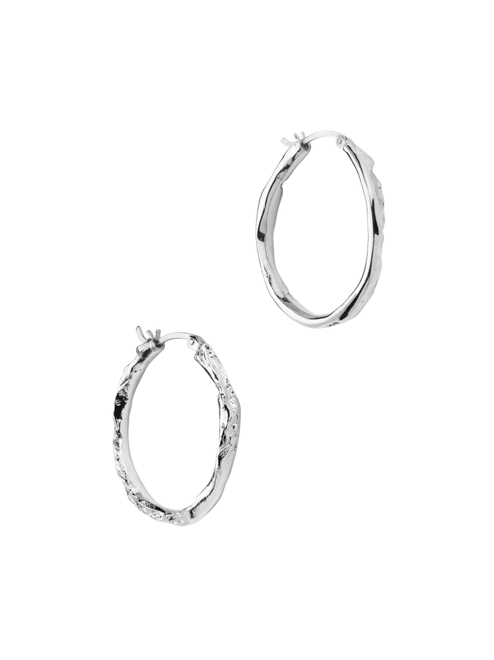 With a contrasting smooth finish on one side, this hoop makes a bold statement.