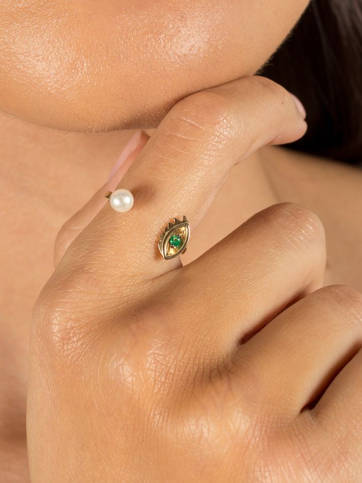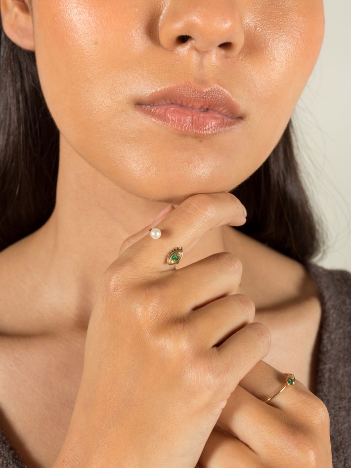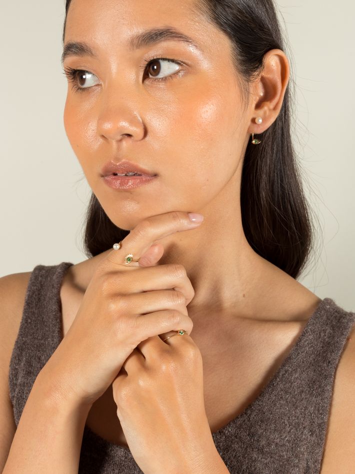 9 kt solid yellow gold1 emerald & 1 pearl