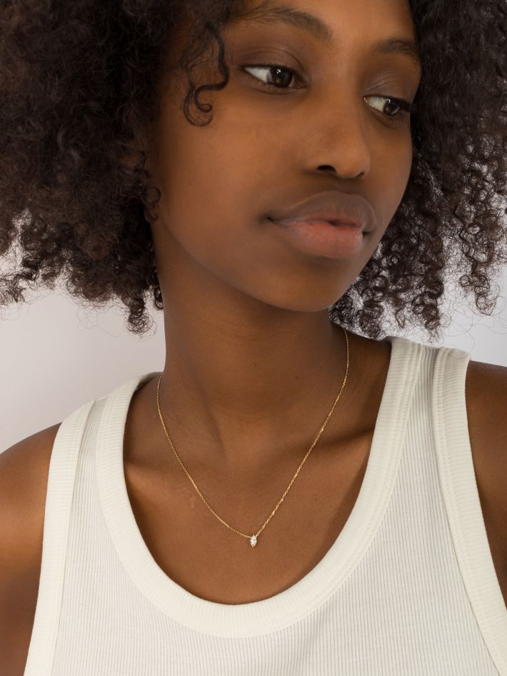 A beautifully cut marquise diamond on a delicate chain - a great layering piece.