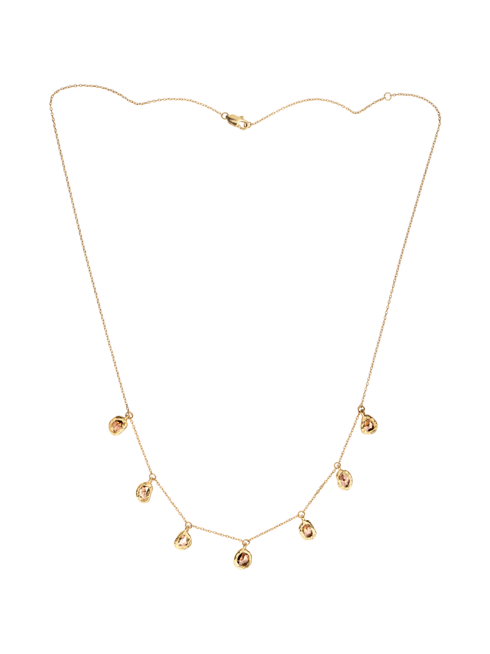 Seven teeny rose cut diamonds embedded in solid gold settings.