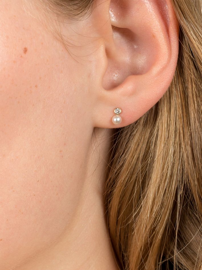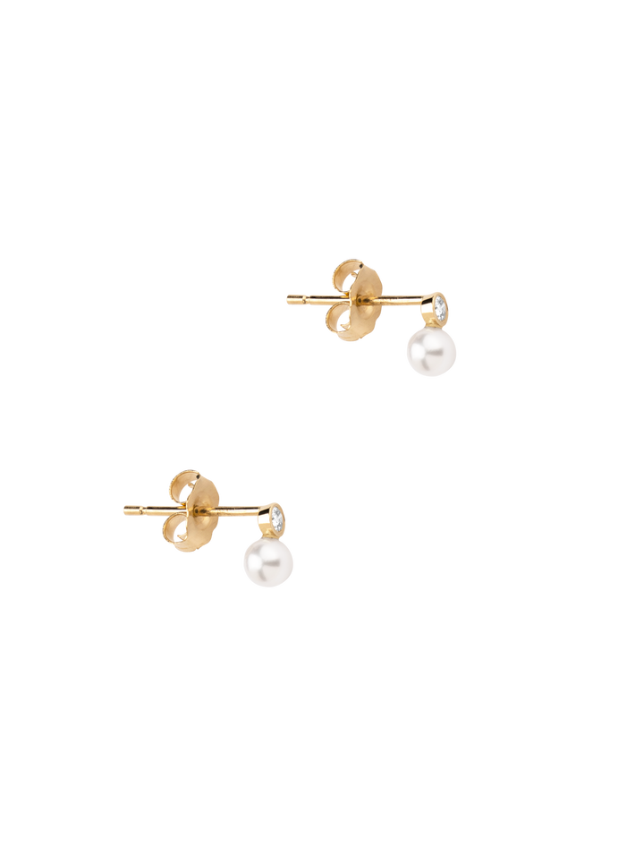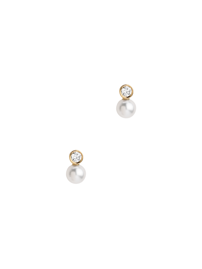 Mixed media pearl and white diamond studs