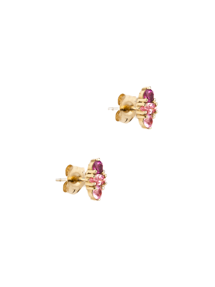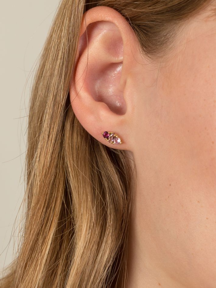 14 kt solid yellow gold0.7 ct in 4 sapphires & 0.3 ct in 2 rhodolitesPair of earrings