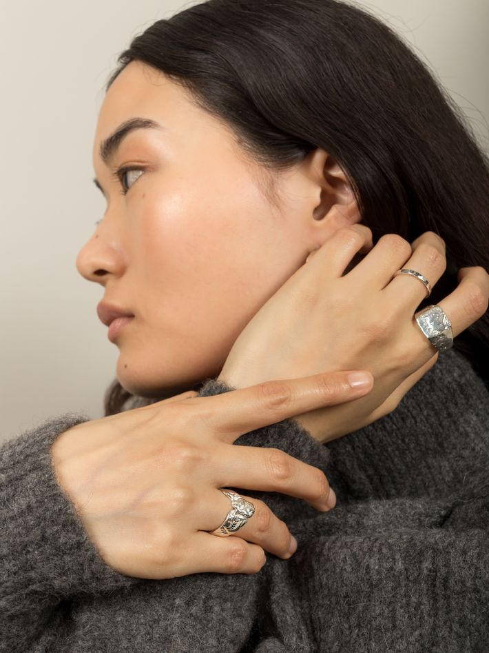 Made of a single, solid precious metal or metal alloy. Highly durable, can always be re-polished to regain its shine after wear.
