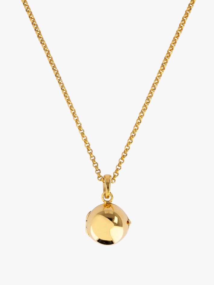 Made of plated 22 karat yellow gold, a thin layer of precious metal layered on the surface of a precious base metal. We recommend using our replating service every 3 or 4 years.