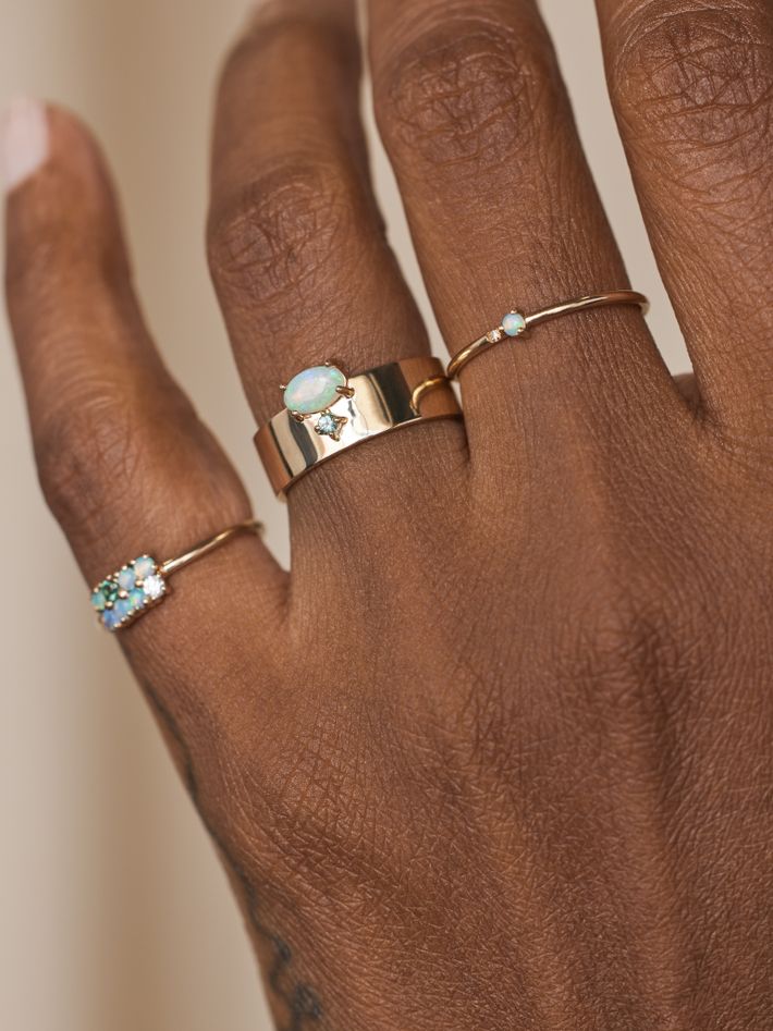 "Wing, a trained sculptor, pioneered a new take on jewellery, using teeny tiny and beautiful stones to create delicate, dreamy pieces. She is known for her signature shapes, modern designs with an experimental edge, and use of ethically sourced opals and diamonds."