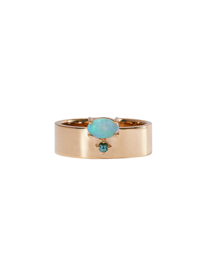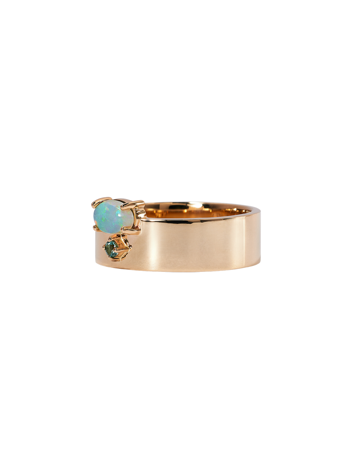 Opal and tourmaline bricolage ring