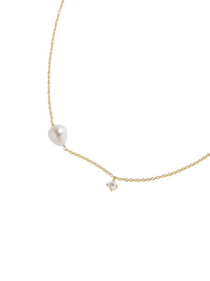 P228 Pearl and Zirconia Recycled Gold Vermeil Necklace