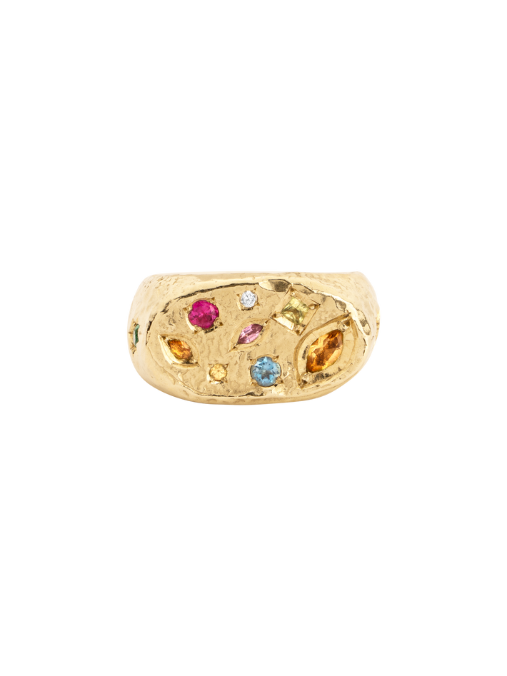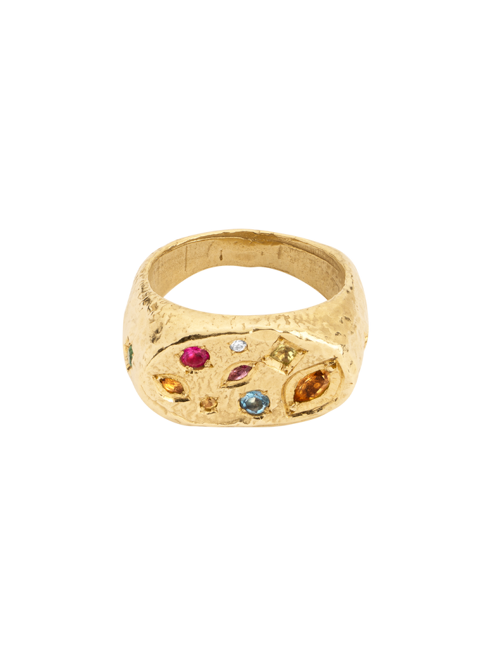 9 kt solid yellow gold1 aquamarine, 1 peridot, 1 sapphire, 1 diamond & 1 citrine