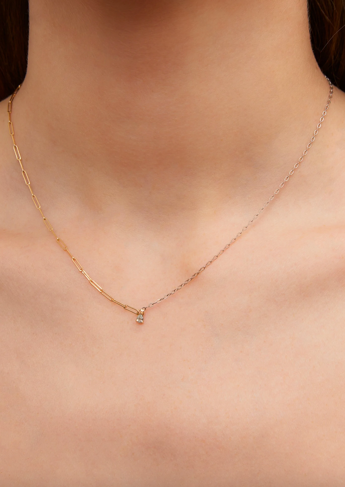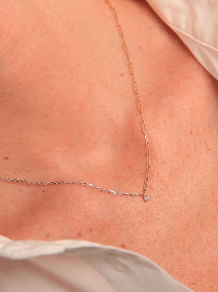 Pear diamond 0.10 solitaire necklace in mixed gold (Refurbished)