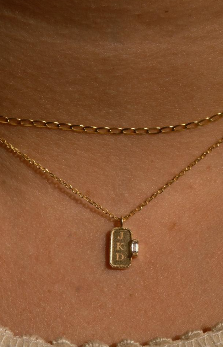 Personalised Rectangle Baguette Signet Necklace