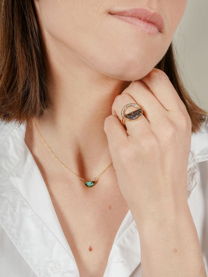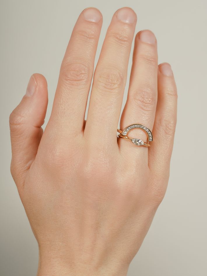 Petite rainbow ring with diamonds