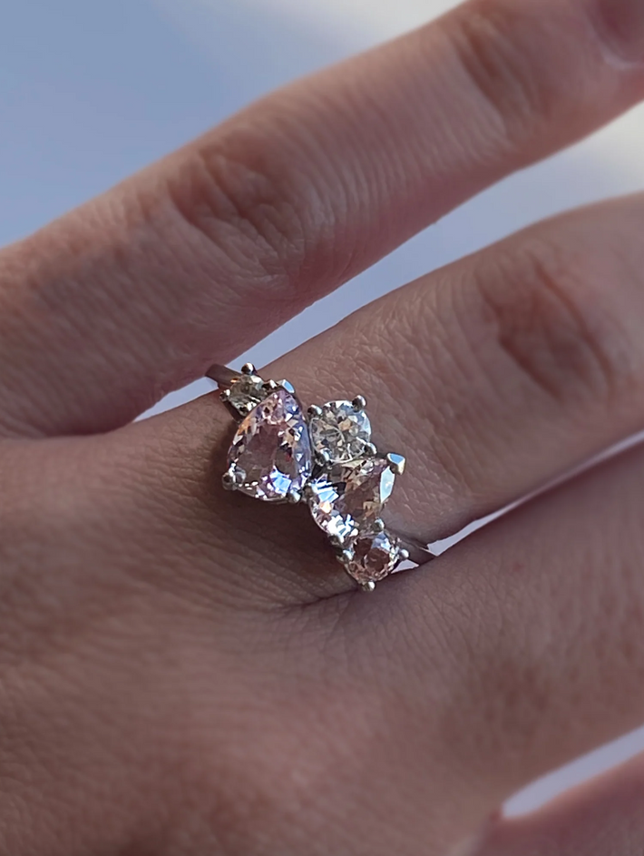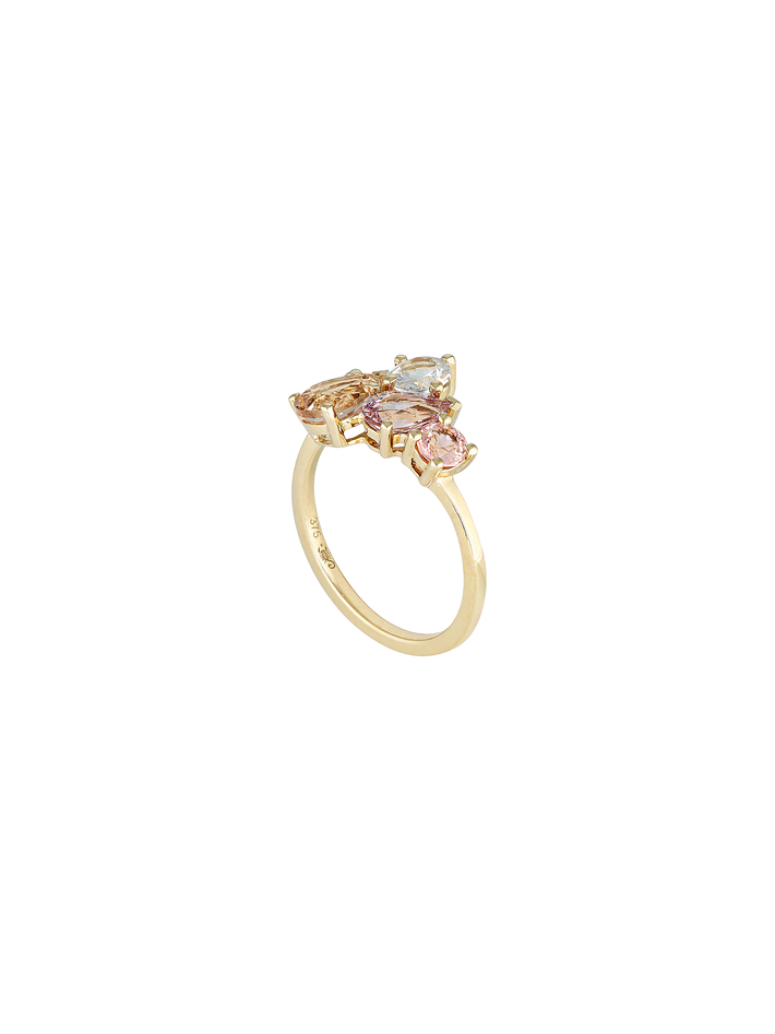 9 kt solid yellow gold2 morganites, 2 sapphires & 1 diamond