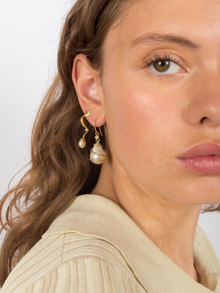 A unique drop earring, we adore the delicate twist drop detailing and diamond + pearl duo.