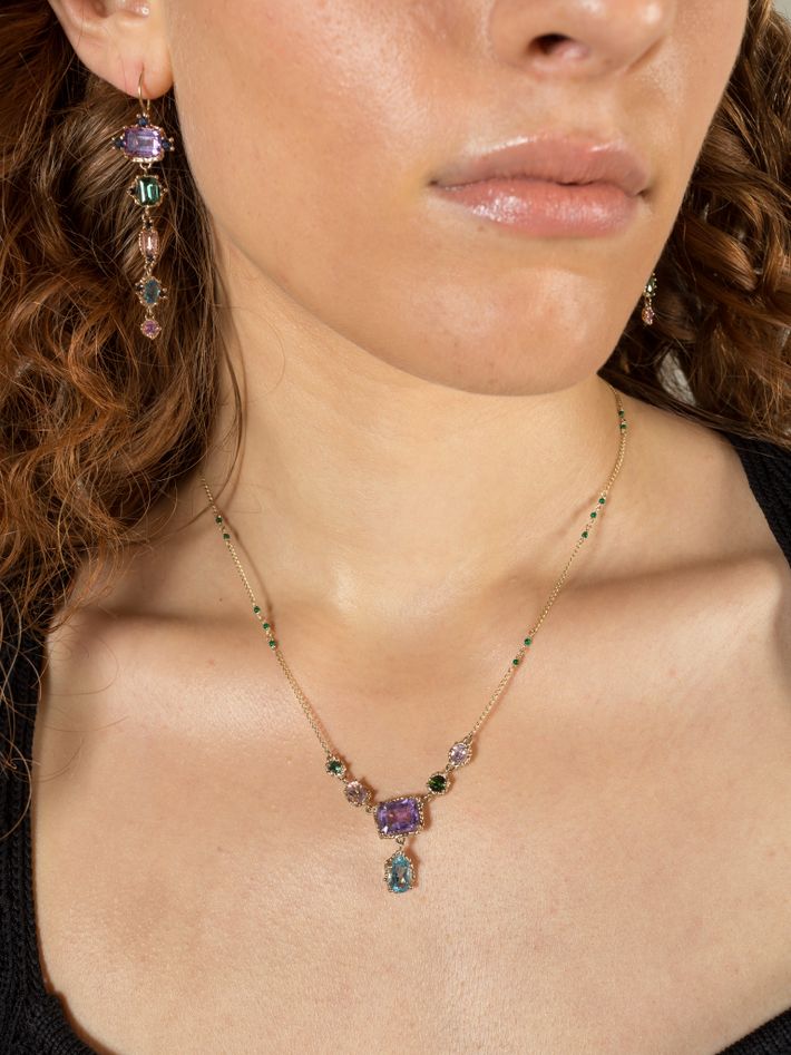 Purple, pink & green mega croix drop earrings
