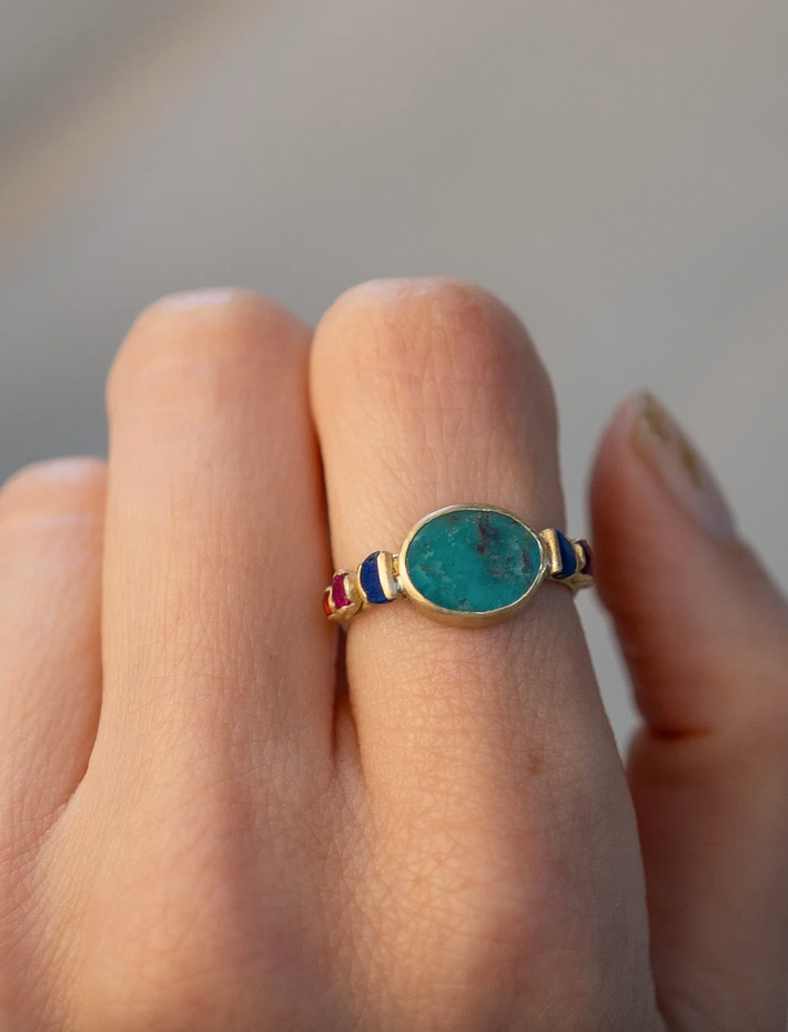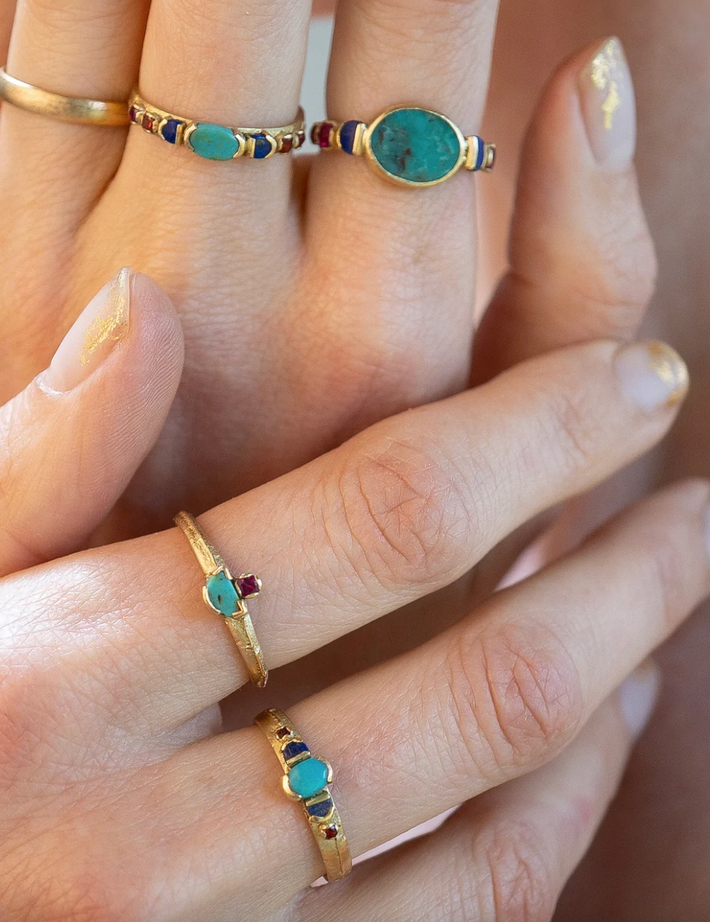 "Heidi sources raw semi-precious gemstones such as turquoise, lapis and labradorite and carefully selects them for their unique beauty and colour. Her collection will include a modern heirloom for everyone."