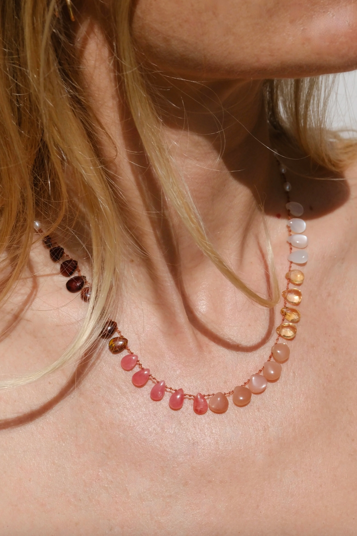14 kt yellow gold plated sterling silverPearl, garnet, sapphire, moonstone, aquamarine, amazonite & amethyst
