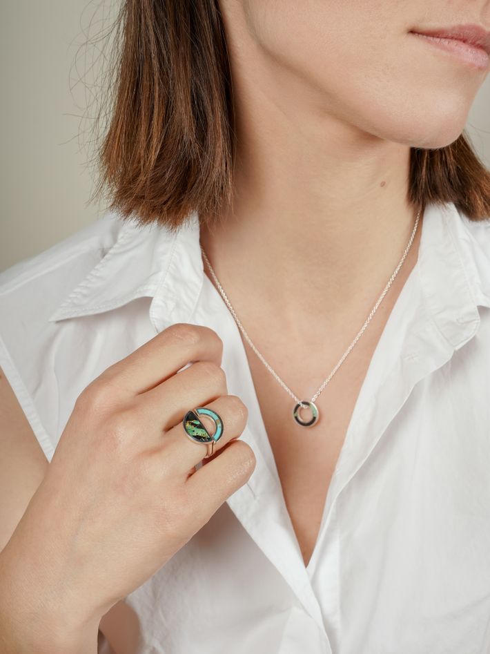 Sterling silver & 14 kt solid yellow gold1 turquoise