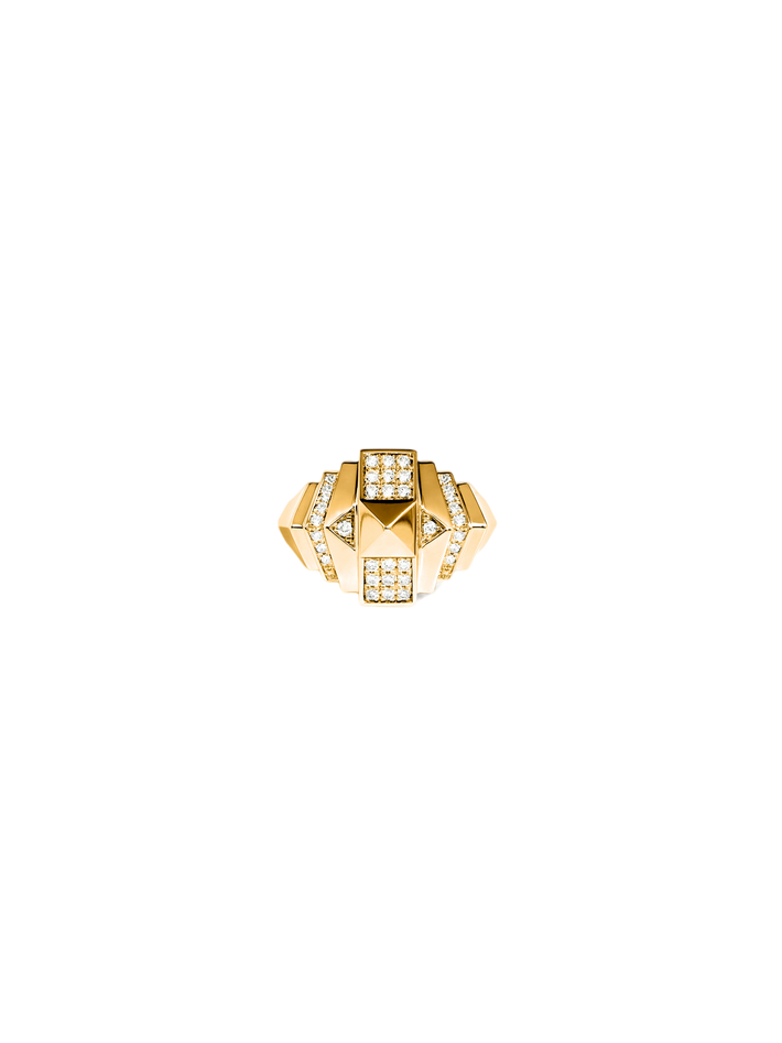 Ring mini rockaway pyramid half paved diamonds & yellow gold